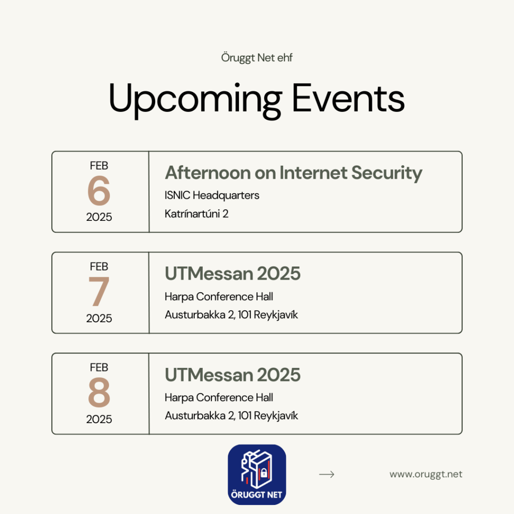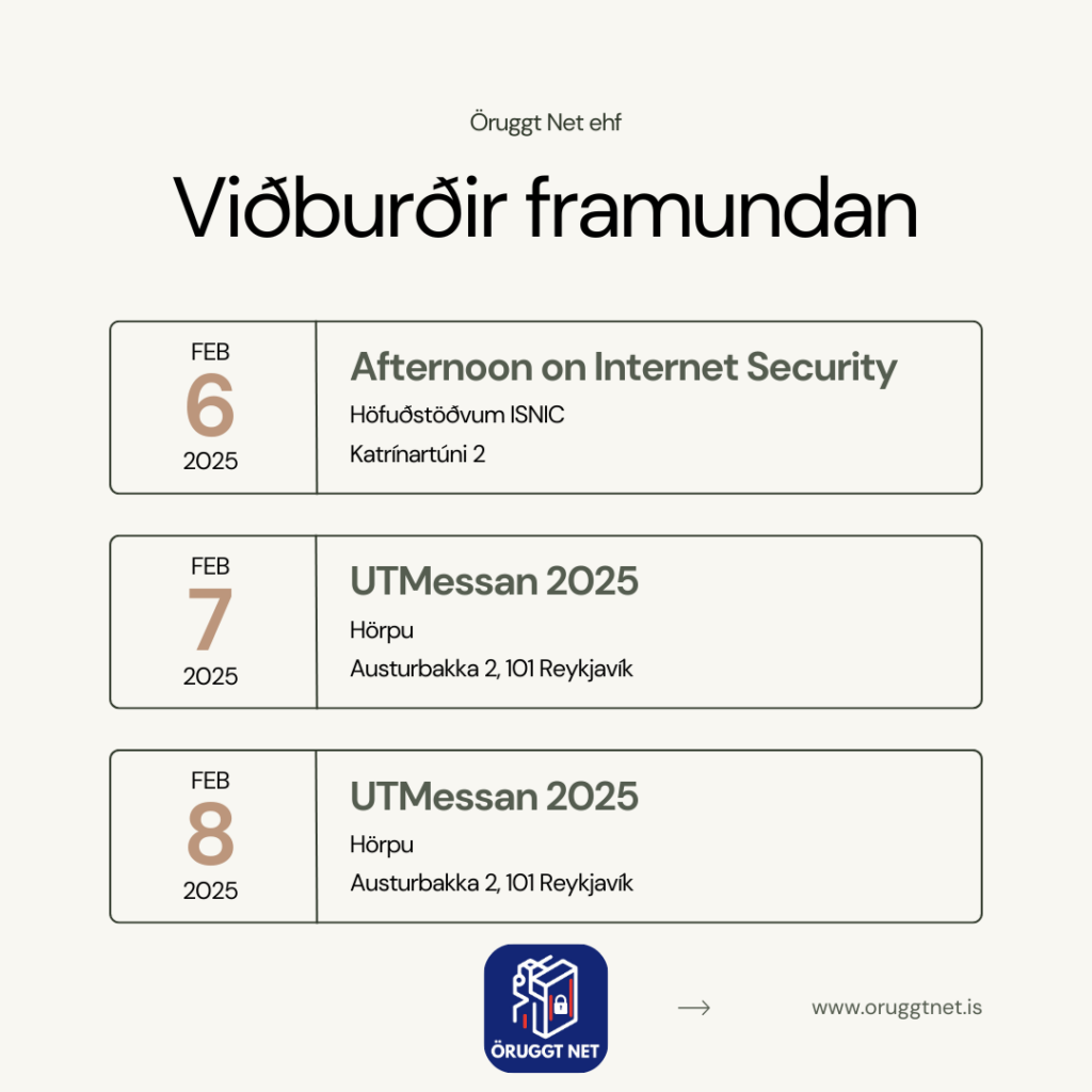 Svo í beinu framhaldi verðum við á UTMessunni í Hörpu dagana 7. og 8. febrúar. Við verðum með bás í Hörpu og munum kynna starfsemi okkar fyrir gestum og gangandi. Kíkið endilega við á básinn okkar og tökum spjallið um netöryggi.