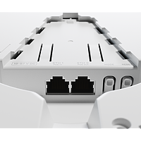 Even though the radio supports repeater mode, the two Gigabit Ethernet ports give you the ability to extend your network with cables, even if PoE power is required: the cAP XL ac supports 802.3af/at PoE input on the first port and passive PoE output (up to 57V) on the second port.