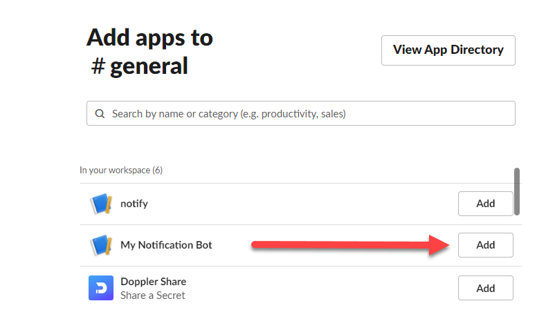 Find the name of your new bot and click Add