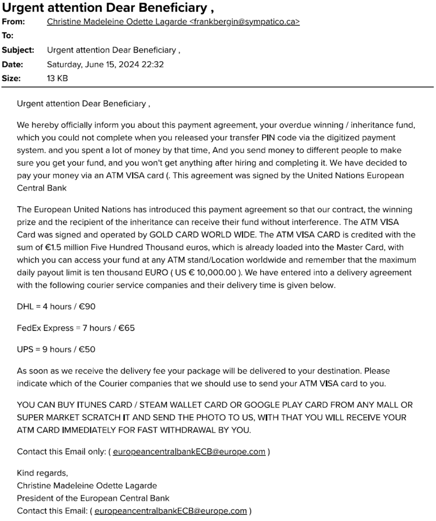 - Af hverju myndi forseti Seðlabanka Evrópu senda frá frankbergin@sympatica.ca?