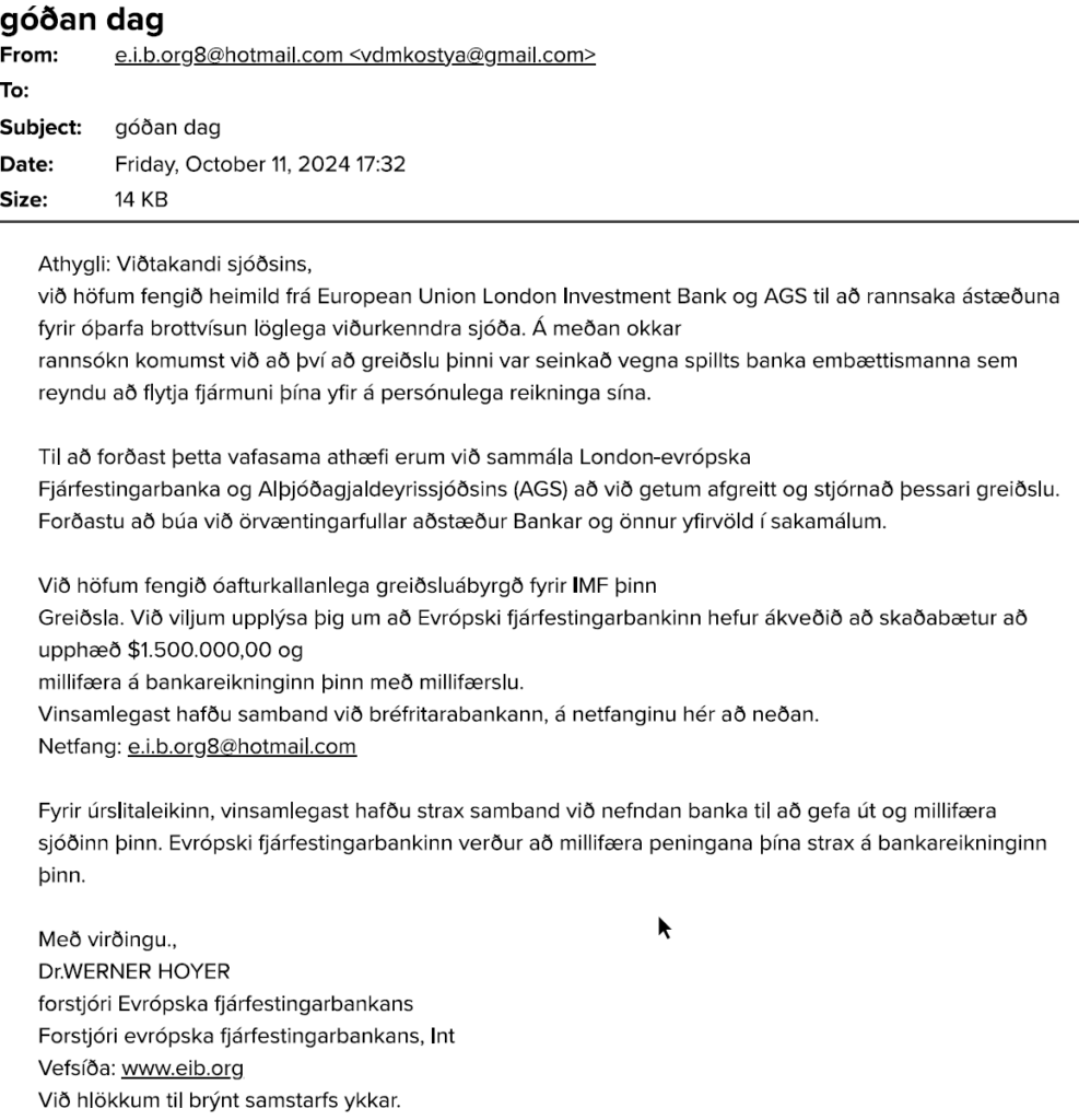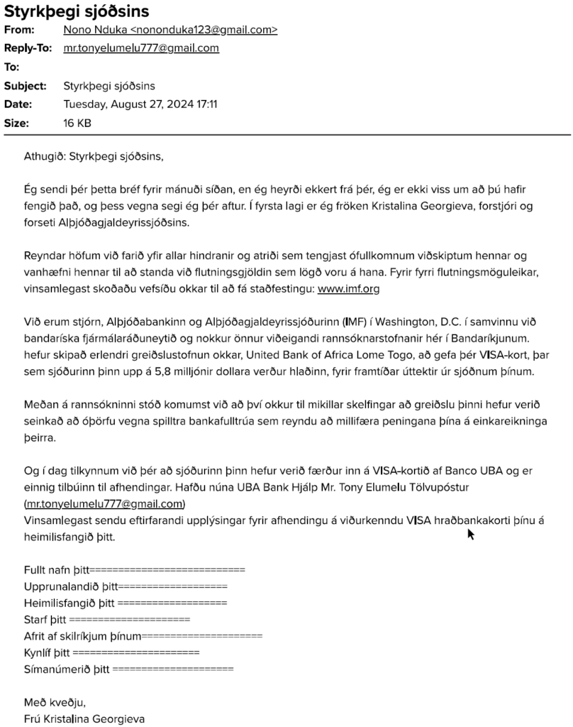 - Þú færð tölvupóst sem lítur út fyrir að vera frá bankanum þínum með tilkynningu um eitthvert stórslys.